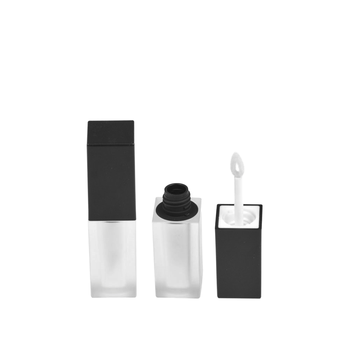 Etiqueta privada 4ml Tubo de brillo de labios esmerilado Diseño cuadrado Tapa negra Material plástico superior dorado Características Tapón de rosca con patrón de compresión